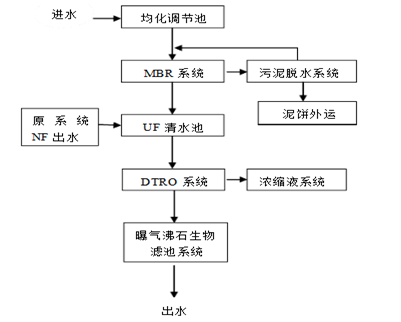 城市垃圾填埋場滲濾液的處理一直是填埋場設計、運行和管理中非常棘手的問題。滲濾液是液體在填埋場重力流動的產(chǎn)物,主要來源于降水和垃圾本身的內(nèi)含水。由于液體在流動過程中有許多因素可能影響到滲濾液的性質,包括物理因素、化學因素以及生物因素等,所以滲濾液的性質在一個相當大的范圍內(nèi)變動。 城市垃圾填埋場滲濾液是一種成分復雜的高濃度有機廢水,若不加處理而直接排入環(huán)境,會造成嚴重的環(huán)境污染。以保護環(huán)境為目的,對滲濾液進行處理是必不可少的。 一般來說,其pH值在4~9之間,COD在2000~62000mg/L的范圍內(nèi),BOD5從60~45000mg/L,重金屬濃度和市政污水中重金屬的濃度基本一致。垃圾滲濾液具有不同于一般城市污水的特點:BOD5和COD濃度高、金屬含量較高、水質水量變化大、氨氮的含量較高,微生物營養(yǎng)元素比例失調(diào)等 垃圾填埋場由于其特性,單一的處理方法并不能將其處理達標,必須采用多種工藝相結合的方法。 1、常見的綜合處理流程如下: (1)MBR+DTRO+沸石生物濾池處理工藝 說明:該工藝中的MBR設置由一級反硝化系統(tǒng),一級硝化系統(tǒng)和二級反硝化系統(tǒng),二級硝化系統(tǒng)構成。一級反硝化系統(tǒng)主要是將硝態(tài)氮轉化為N2,去除部分BOD。一級硝化去除一級反硝化剩余的BOD。經(jīng)過一級反應之后,絕大部分的BOD被去除。二級反硝化碳源不足時,需外加碳源,提高對總氮的去除率。二級硝化主要去除二級反硝化中多余的碳源。該系統(tǒng)設置碳源投加系統(tǒng)主要用于老齡滲濾液處理階段水質極端惡化的情況。在水質改善的情況下,無需外加碳源。甚至可以超越2級AO直接進超濾,只需調(diào)整MBR出水總氮<150mg/L. MBR系統(tǒng)流程圖: (2)兩級管網(wǎng)式反滲透處理填埋場滲濾液 說明:采用STRO工藝處理滲濾液,系統(tǒng)運行效能高且穩(wěn)定,對氨氮去除率99.2%-99.5%,對COD去除率在99.5%以上,對電導率去除在92%-95%,出水中未檢測處SS,結合濃縮液回灌,實現(xiàn)了污染物零排放。STRO系統(tǒng)所采用的PT/ST膜組件具有膜污染低,填充密度高,鹽分通過率低和能夠實現(xiàn)內(nèi)置標準清洗和維護的優(yōu)勢。同時STRO系統(tǒng)具有反滲透單元可拆卸、系統(tǒng)安裝及維修簡單、設備占地小及可安置在集裝箱移動等特點。非常適用于小規(guī)模垃圾滲濾液處理 2、常見的處理工藝組合: (1)硝化/反硝化系統(tǒng)+MBR+RO 硝化/反硝化工藝是針對氨氮去除的生化處理方法,經(jīng)硝化段和反硝化段的聯(lián)合作用,實現(xiàn)對COD和氨氮的同時徹底去除,出水通過MBR泥水分離和RO對離子的深度截留最終達到國家排放標準。 (3)兩級反滲透工藝(或兩級DTRO工藝或全膜法處理工藝) 該工藝為純物理的處理方法,占地面積較小,施工和調(diào)試周期短,但很容易造成污染物質的富集,很難實現(xiàn)出水長期穩(wěn)定達標,且一次性投資和運行費用很高。 (4)絮凝沉淀+硝化/反硝化系統(tǒng)+MBR+NF+RO 采用該工藝大多做成集成設備,前端增加化學法進行預處理,工藝路線較長,增加整體的控制難度,集成設備對水質水量波動適應能力差,很容易出現(xiàn)池容偏小,生化效果差的問題。 (5)中溫厭氧系統(tǒng)+硝化/反硝化+MBR+RO 對高濃度COD去除效果較好,常應用在垃圾焚燒廠、垃圾中轉站等新鮮垃圾滲濾液的處理中,該工藝對進水的穩(wěn)定性要求很高,且厭氧系統(tǒng)要保持35℃,投資和運行成本高。 垃圾滲濾液具有成分復雜,水質水量變化巨大,有機物和氨氮濃度高,微生物營養(yǎng)元素比例失調(diào)等特點,因此在選擇垃圾滲濾液生物處理工藝時,必須詳細測定垃圾滲濾液的各種成分,分析其特點,以便采取相應的對策。還應通過小試和中試,取得可靠優(yōu)化的工藝參數(shù),以獲得理想的處理效果。多種方法應用于滲濾液的處理是可行的。宜發(fā)展投資省,效果好的滲濾液處理技術。為了建設標準化的城市垃圾衛(wèi)生填埋場,對其滲濾液的處理應作更深入的研究。