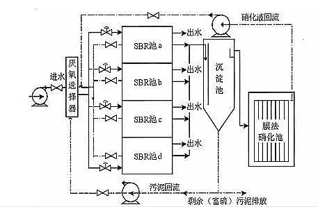 雙循環(huán)兩相生物處理工藝(BICT)是在序批式活性污泥法的基礎(chǔ)上,增設(shè)獨立的生物膜硝化反應(yīng)器,使自養(yǎng)硝化菌與反硝化菌、PAOs 等異養(yǎng)菌分相培養(yǎng),以克服脫氮與除磷間的 SRT 矛盾及硝酸鹽、 DO 干擾釋磷而開發(fā)的污水處理新工藝,其主體單元由厭氧生物選擇器、序批式懸浮污泥主反應(yīng)器、生物膜硝化反應(yīng)器組成。