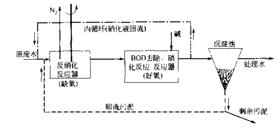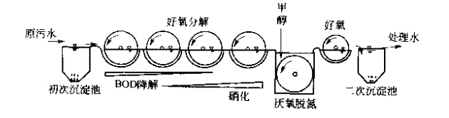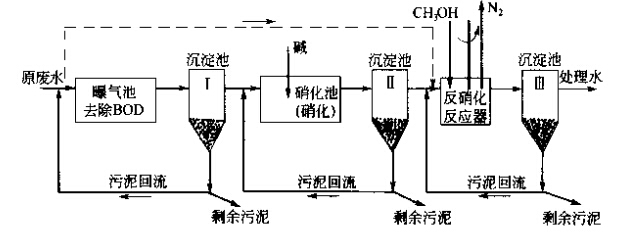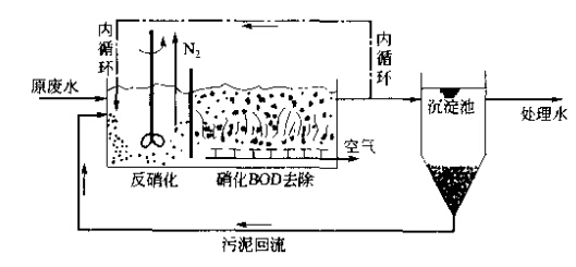 污水中的氮一般以有機(jī)氮、氨氮、亞硝酸鹽氰和硝酸鹽氮四種形式存在。生活污水中氮的主要存在形態(tài)是有機(jī)氮和氨氮。通常采用的二級生化處理技術(shù)對氮的去除率是比較低的,一般將有機(jī)氮化合轉(zhuǎn)化為氨氮,卻不能有效地去除氮。污水脫氮,從原理看,可以分為物理法、化學(xué)法和生物法三大類。由于生物脫氮一般能夠滿足有關(guān)方面對污水凈化的要求,而且價(jià)格低廉,產(chǎn)生的二次污染物較易處理,因此生物脫氮方法是當(dāng)前最活躍的研究與投資開發(fā)領(lǐng)域。 一、生物脫氮技術(shù) 生物脫氮技術(shù)主要是利用污水中某些細(xì)菌的生物氧化與還原作用實(shí)現(xiàn)的。生物脫氮工藝從碳源的來源分,可分為外碳源工藝和內(nèi)碳源工藝;從硝化和反硝化過程在工藝流程中的位置來分,可分為傳統(tǒng)工藝和前置反硝化工藝;按照細(xì)菌的存在狀態(tài)不同,可以分為活性污泥法和生物膜法生物脫氮工藝。前者的硝化菌、反硝化菌等微生物處于懸浮態(tài),而后者的各種微生物卻附著在生物膜上。 1.活性污泥法 活性污泥法是一種歷史悠久、目前應(yīng)用最廣泛的生物脫氮技術(shù),它有許多種形忒。 (1)活性污泥法傳統(tǒng)流程這是一種傳統(tǒng)的三級生物脫氮工藝,即有機(jī)物的氧化、硝化和反硝化作用分別在不同的構(gòu)筑物中完成,如下圖所示: 由于有機(jī)物去除、氨氧化和硝酸鹽還原依次進(jìn)行,彼此之間相對獨(dú)立,并分別設(shè)置污泥沉淀及回流系統(tǒng),系統(tǒng)運(yùn)行的靈活性比較強(qiáng),有機(jī)物降解菌、硝化菌和反硝化菌的生長環(huán)境均較佳,因而反應(yīng)速度快,脫氮效果也比較好。但是,三級活性污泥法的流程長、構(gòu)筑物多、附屬設(shè)備多,因此基建費(fèi)用高、管理難度大。此外,為了保持硝化所需的穩(wěn)定pH值, 往往兩要向硝化池加堿,為了保證反硝化階段有足夠的電子受體,需要外加甲醇等碳源,為了除去尾水中剩余的有毒物質(zhì)甲醇,又必須增設(shè)后曝氣池,所以運(yùn)行費(fèi)用也很高。可以看出,這種工藝的確具有很大的局限性。 如果將有機(jī)物去除和硝化放在同一個(gè)反應(yīng)器中進(jìn)行,而將反硝化作用放在另一個(gè)反應(yīng)器中進(jìn)行,則可以將三級生物脫氮系統(tǒng)簡化為兩級生物脫氮系統(tǒng)。如下圖: 與三級生物脫氮流程相比,兩級生物脫氮流程的基建費(fèi)用和占地面積均有所降低,但是仍然需要外加甲醇和堿源。 (2)前置反硝化生物脫氮系統(tǒng)又稱缺氧-好氧活性污泥脫氮系統(tǒng)、A/0生物脫氮流程、 改良LudMck-Euinger工藝等。前置反硝化是目前使用比較廣泛的一種脫氮工藝(分建式缺氧好氧活性污泥脫氮系統(tǒng)如下圖:)。 除分建式系統(tǒng)外,本工藝還可以建成合建式裝置,即將缺氧和好氧環(huán)境放在-個(gè)構(gòu)筑物內(nèi),中間以擋板隔開,擋板下端與池內(nèi)壁之間以一定的縫隙相通,如下圖所示: 采用合建式裝置,對于現(xiàn)有推流式曝氣池的改造來說更加方便。 與傳統(tǒng)的生物脫氰流程相比較,該流程具有如下優(yōu)勢。 ①由于構(gòu)筑物數(shù)量減少,因而流程得以簡化,占地面積減少,且缺氧段消耗原污水中的部分有機(jī)物,能夠降低好氧段的有機(jī)物污泥負(fù)荷,不僅容易使硝化菌取得競爭優(yōu)勢,而且降低了曝氣充氧的電耗,因而基建費(fèi)用和運(yùn)行費(fèi)用均比較低。 ②將缺氧段放在好氧段前邊,可以起到生物選擇器的作用,有利于防止污泥膨脹,改善活性污泥的沉降性能。 ③反硝化過程能夠充分利用原污水中有機(jī)物和內(nèi)源代謝產(chǎn)物作為電子受體,既可以減少或取消外加碳源,從面省去后曝氣池,提高處理水水質(zhì),又可以保證較高的碳比,有利于反硝化的充分進(jìn)行。 ④由于存在內(nèi)循環(huán),缺氧反硝化產(chǎn)生的堿度能夠補(bǔ)償硝化反應(yīng)所造成的pH值下降,大大降低了堿投加量。 前置反硝化生物脫氮系統(tǒng)也有自己的不足之處。一是處理出水中含有一定濃度的硝酸鹽,可能污染受納水體。第二,由于內(nèi)回流比限制本工藝的脫氮率一般為70%~80%, 很難達(dá)到90%。而且,該工藝對運(yùn)行管理人員的素質(zhì)要求比較高。例如,如果系統(tǒng)運(yùn)行不當(dāng),沉淀池內(nèi)將發(fā)生反硝化反應(yīng),造成污泥上浮,使處理水惡化。 (3)氧化溝工藝從工藝、流態(tài)和構(gòu)造方面看,氧化溝也非常適合于生物脫氮。 ①氧化溝的污泥齡通常很長,一般可達(dá)15~30d,非常適合于世代時(shí)間長、增值緩慢的硝化菌存活與繁殖。 ②氧化溝往往做成總長達(dá)幾十米甚至上百米的環(huán)行構(gòu)筑物。由于循環(huán)次數(shù)多達(dá)72次其至360次,混合液沿溝道方向近似于完全混合式。然而由于工藝狀況不同,混合液中溶解氧的濃度在不同位置也存在很大差異:在曝氣器的附近非常容易出現(xiàn)DO比較高的富氧區(qū),而在遠(yuǎn)離曝氣裝置的地方,容易出現(xiàn)DO比較低的缺氧區(qū),使硝化和反硝化能夠在同一裝置中順利進(jìn)行,從而達(dá)到生物脫氮的目的。 據(jù)報(bào)道,Carrousel氧化溝、交替工作氧化溝、二次沉淀池交替運(yùn)行氧化溝、Orbal型氧化溝、曝氣-沉淀一體化氧化溝和刺渠型一體化氧化溝等均可以用于脫